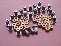 中山汇众精密五金制品厂是一家生产各种铁基.铁铜基结构件和减摩零件和专业厂家,为汽车.摩托车.纺织机械.办公机械.工具机械.锁具.食品机械.玩具类等各类五金行业提供零配件.我厂目前压制的产品类型有:汽车、摩托车:减震器零件、气门导管、油米各种减速电机用到的齿轮零件;纺织机械类:主要缝纫机、织带机、织布机、缝盘机、横机、圆机绣花机等用到的齿轮、链轮、伞轮、棘轮等其它异形高强度结构件;办公机械:主要是碎纸机、打印机、复印机、点钞机、削笔机、打孔机等用到的各类正齿轮、伞齿轮、螺旋齿轮、含油轴承、皮带轮连接衬套等结构配件;食品器械类:主要是绞肉机、面包机、果汁机、榨汁机、豆浆机、面条机等用到的含油轴承、不锈钢刀片、刀盘、正齿轮、伞齿轮等各种结构件;健身器械及五金家私类:按摩器、健身椅、休闲椅、沙滩椅、办公椅等用到的偏心块、高强度异形衬套、六角轴套、高强度衬套、高耐磨锡青铜衬套等;工具机械类:主要是电动工具、气动工具等应用到的牙箱、冲击块、齿轮、气缸缸盖、砂轮夹片、平面伞齿轮、斜齿轮、双联齿等各种结构配件;锁具配件:方舌、斜舌、拔动块、齿轮、齿块等;玩具类:玩具上的传动齿轮(如小型齿轮和大车轮)、微型轴承、轴套及高强度结构零件;其 它 行 业:1、美容美发器具上的各种精密零件,可根据客户要求制作各种零件;2、印刷、包装机械、塑料机械、农用机械、自动化装备机械等设备的可批量生产的各类结构配件;粉末治金工艺的优点:1、不需要或只需要少量切割加工;2、材料利用率可高达98﹪;3、零件尺寸的制造公差较少和具有再现性; 4、材料成分可调;5、零件表面光洁度较好;6、可通过热处理提高强度和耐磨性;7、对于自润滑或过滤用,可提供具有可控孔隙度的材料或制品;8、可制造其它金属成形工艺不能制造的形状复杂或奇特的零件;9、适于中等到大量零件生产。